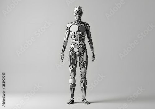 robot, figure, standing, neutral, background, technology, design, modern, grey, mechanical, artificial, sculpture, shape, futuristic, abstract, innovation, android, creative, three-dimensional, representation, minimalist, engineering, silhouette, static, science fiction, concept, digital, artificial intelligence, structure, industry, decor, man-made, material, unisex, no people, motionless, emotionless, contemporary, aesthetic, robotic, anatomy, balance
