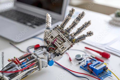 robotic, hand, engineering, education, learning, stem, school, prosthetic, study, classroom, mechanical, desk, laptop, component, prototype, project, wire, bionic, cable, science, modular, device, modern, innovation, training, technology, assembly, tool, hardware, practical, interactive, system, test, control, machine, circuit, intelligence, programming, software