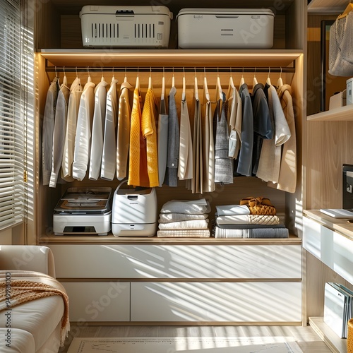 home, assistant, robotic, clothes rack, organizing, clothes, folding, efficient, space, storage, automation, domestic, technology, interior, household, bedchamber, closet, fashion, lifestyle, smart, futuristic, modern, clean, tidy, organised, precise, minimalist, machine, appliance, device, service, utility, convenience, solution, organisation, management, design, arrangement, mechanism, routine, system, control, order, category, shelf, drawer, compartment, productivity