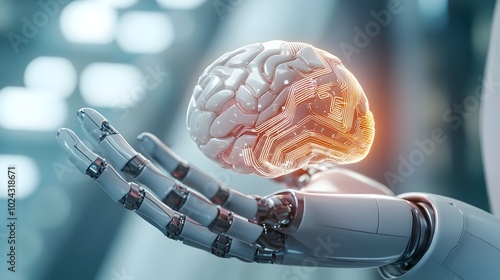 robotic, palm, glowing, brain, holographic, screen, algorithm, automation, futuristic, technology, risk, singularity, cybernetic, monochrome, digital, machine, intelligence, future, innovation, science, virtual, processing, datum, interface, visualisation, control, system, network, circuit, code, computing, electronic, energy, engineering, high technology, industry, modern, research, security, software, space, tech, three-dimensional, cyber, development, evolution, experiment, forecast