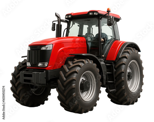 Robust red tractor symbolizing agricultural strength and efficiency.