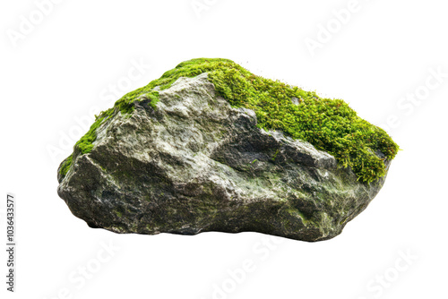 Rock with vibrant green moss on isolated on transparent and white background.PNG image,