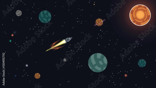 Rocket Ship Soaring Through a Vibrant Galaxy Space Exploration and Cosmic Adventure Illustration