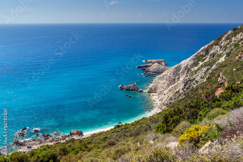 Rocks and blue waters near Petani Beach, Kefalonia, Ionian Islands, Greece