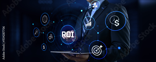 ROI Return on investment financial technology trading business and finance concept.