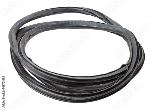 Rolled up black rubber sealant for elements of the car body, doors or trunk, for noise insulation, thermal and sound, preventing heat loss in the car interior. Sealing gasket for repair in a workshop.