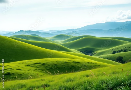 Rolling green hills, lush meadows, vibrant grassy landscape , environment, scenery