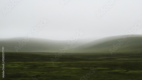 Rolling Green Hills Under a Misty Sky
