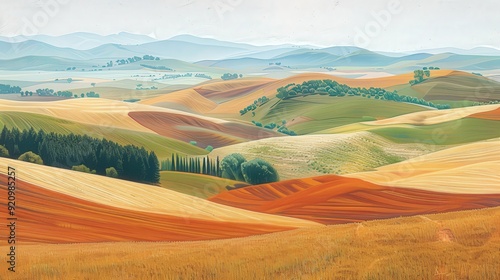 hill, landscape, field, green, rural, nature, countryside, grass, farmland, meadow, sky, horizon, summer, agriculture, gold, farm, scenery, beautiful, scenic, view, mountain, pasture, tree, yellow, brown, blue, wide, open, rolling, cultivation, vegetation, foliage, natural