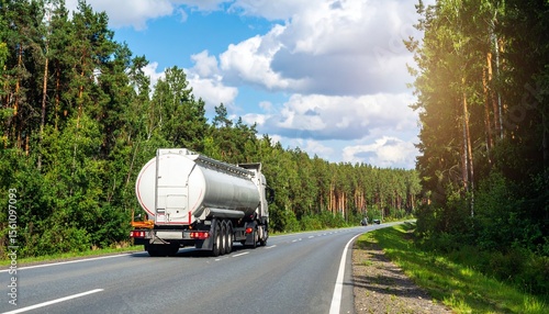 truck, tank, panoramic, forest, road, travel, transportation, cargo, scenic, copy space, vehicle, lush, nature, landscape, journey, greenery, motion, freight, outdoors, environment, transport, mobility, logistic, highway, foliage, route, modern, commercial, trucking, infrastructure, rural, forested, background, movement, direction, delivery, supply, perspective, hauling, remote, adventure, natural, destination, elevation, transit