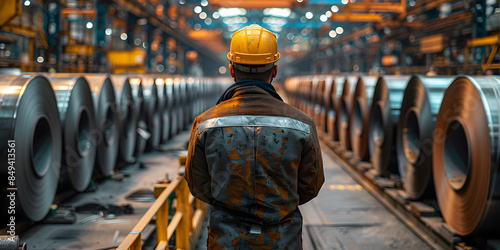 Rolls of galvanized steel sheet inside the factory or warehouse.