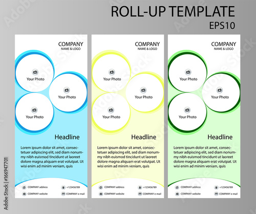 Roll-up banner template, business advertising board, presentation roll up design, vector