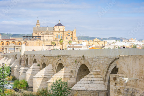 Roman bridge and cathedral - mosque by the river in Cordoba, Andalusia, Spain