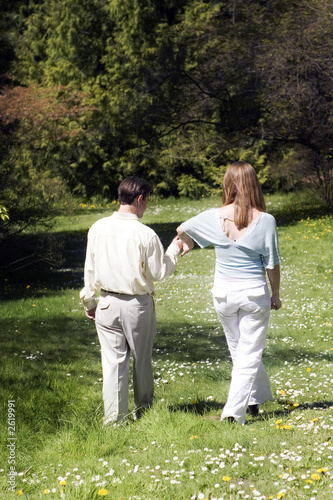 romance, love, walk, park, field, holding hands, couple, happy, attractive, bench, romantic, summer, spring, date, husband, wife, boyfriend, girlfriend, man, woman