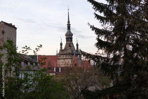 Romania Sighisoara city view on a cloudy summer day