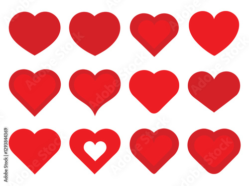 Romantic Abstract Love Hearts Symbols in Various Shapes for Valentine's Day.