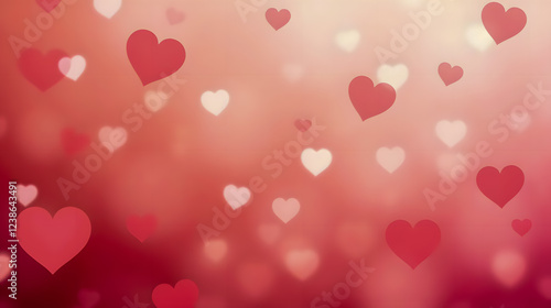 Romantic and Whimsical Background with Soft Hearts Floating on a Blurred Pink and Red Atmosphere for Valentine's Day Celebration