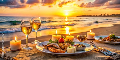 Romantic Beach Dinner Sunset: Grilled Seafood & Wine