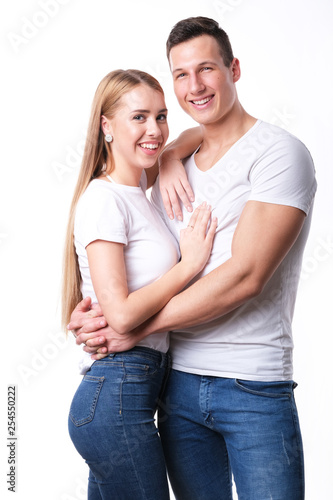 couple, love, woman, young, happy, family, isolated, people, white, beautiful, 2, together, smiling, portrait, romantic, human relationships, happiness, person, pregnancy, hug, romance, beauty, fun, mother, smile, blue, blond, student, touching, university, school, teenage, youth, jean, t-shirt, vitality, white background, man, woman, standing, two people, young couple, young adult, studio shot, adult, affectionate, attitude
