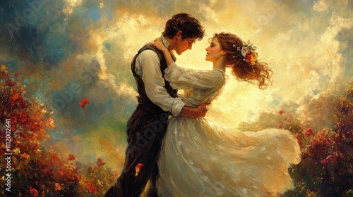 love, romance, couple, hugs, hug, affection, intimacy, passion, tenderness, togetherness, happy, joyful, human relationships, romantic, lover, dating, sweetheart, girlfriend, boyfriend, partner, marriage, wedding, proposal, engagement, fairy tale, dreamy, idylli, serene, peaceful, beautiful, pretty, charming, elegant, graceful, gentle, delicate, flower, garden, nature, sunlight, sky, cloud, art, painting, artwork, illustration, portrait, romanticism, classic