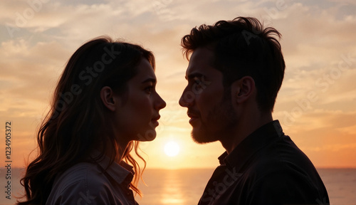 couple, romance, love, sunset, intimacy, connection, human relationships, warm, emotional, passion, together, nature, golden hour, silhouette, bonding, closeness, tenderness, longing, harmony, admiration, engagement, dreamy, scenic, peaceful, lover, affection, warm colors, dating, emotion, twilight, meaningful