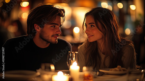 romantic, couple, intimacy, love, affection, candlelight, eatery, dinner, evening, togetherness, connection, human relationships, romance, young couple, man, woman, attractive, beautiful, photogenic, smiling, happy, cheerful, closeup, indoor, bokeh, soft focus, night, date, february 14, anniversary, celebration, special occasion, passion, tenderness, dreamy, sensual, bonding, dating