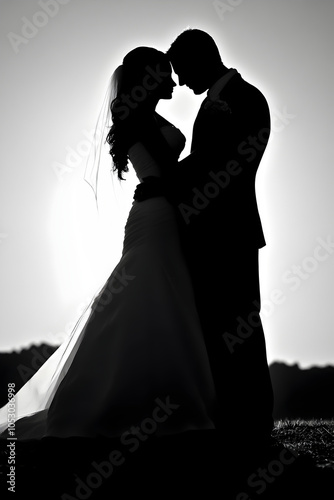 couple, romance, wedding, silhouette, dance, hugs, love, tender, intimate, affection, passion, commitment, black-and-white, monochrome, low light, nature, landscape, evening, dusk, twilight, elegant, graceful, aethereal, romantic