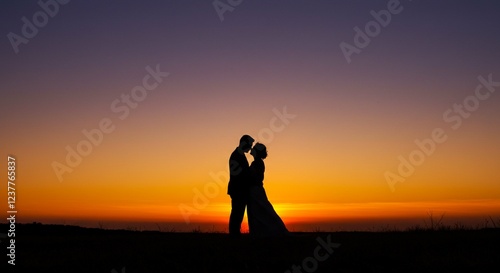 couple, silhouette, sunset, romance, wedding, hugs, love, field, romantic, outdoors, sky, orange, golden hour, bride, groom, affection, human relationships, togetherness, passion, intimacy, tenderness, backlit, dramatic, photo, nature, evening, silhouetted, married, happy