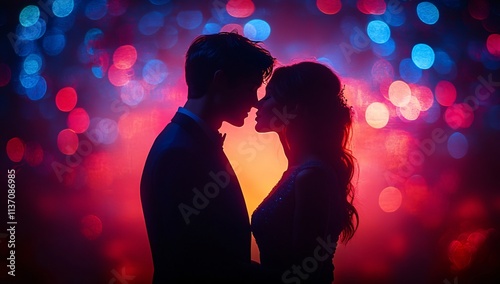 couple, silhouette, romantic, love, passion, intimacy, bokeh, light, red, blue, background, date, night, romance, affection, tenderness, human relationships, togetherness, connection, heart, feeling, emotion, dreamy, magical, vibrant, colours, celebration, wedding, engagement, woman, people, party, dancing, disco, dance, abstract, dancer, valentine, beauty, club, vector, fashion, illustration, nightclub, music, black, girl, person, family