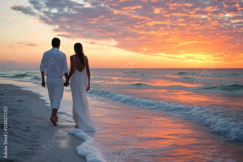 romantic, couple, beach, sunset, walk, shoreline, ocean, sea, love, romance, holding hands, evening, calmness, wave, horizon, sky, cloud, summer, vacation, togetherness, serene, peaceful, sand, water, nature, outdoors, journey, scenic, idylli, human relationships