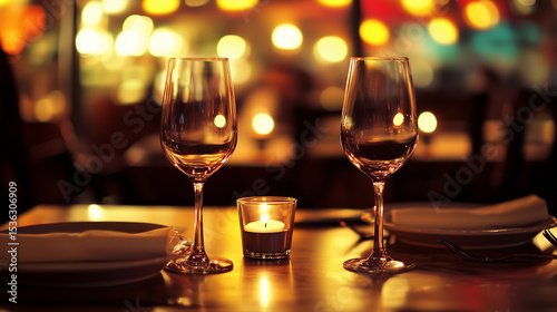 Romantic dinner for two with candlelit wine glasses, a moment of love and connection