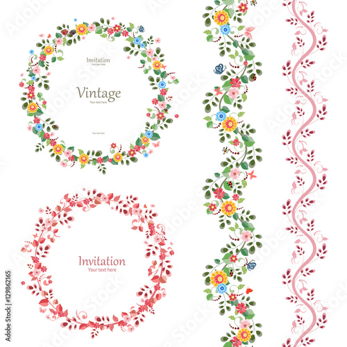 flower, chaplet, floral, vector, wedding, invitation, card, illustration, frame, vintage, design, spring, set, decoration, background, romantic, summer, beautiful, blossom, leaf, border, retro, greeting, nature, decorative, elegant, date, drawing, graphic, celebration, element, love, cute, garden, ornament, holiday, save, birthday, collection, plant, art, style, seamless, template, butterfly, circle, round, bee, coccinellidae, flora