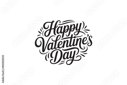 Romantic Happy Valentine’s Day Typography – Black Calligraphy, Decorative Lettering