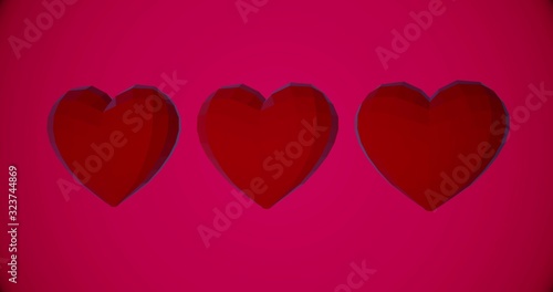 Romantic pattern with polygonal red hearts. For Valentine's Day event. Loop animation 4k. 3D rendering