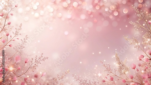 Romantic Pink Floral Background with Sparkling Lights and Delicate Branches
