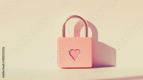 Romantic Pink Lock with Heart Cutout on Plain Background
