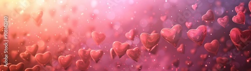 Romantic Red Hearts Floating in Bokeh, 3D Render, Hearts, Love, Valentine's Day