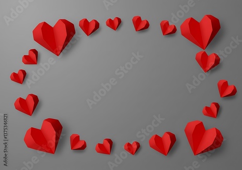 Romantic red paper hearts forming a frame on a gray background perfect for Valentine s Day cards invitations or love themed designs with simple elegant