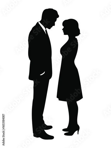 couple, silhouette, romantic, love, intimacy, human relationships, man, woman, suit, dress, heel, standing, pose, elegant, black, white, illustration, graphic, art, design, symbol, connection, oneness, passion, closeness, gesture, wedding, dating, valentine, emotional, feeling, stylish, minimal, outline, figure, people, mood, scene, partner, affection, moment, interaction, vector, family, children, boy, man, business, dance