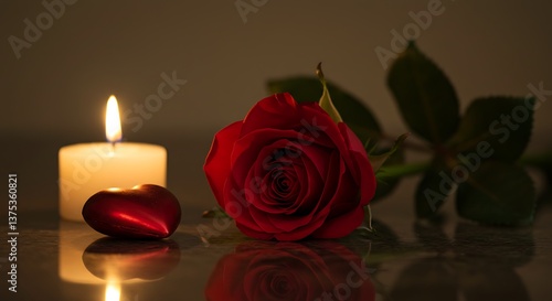 Romantic Still Life: A Red Rose, Candle, and Heart