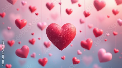 heart, love, valentine, february 14, romantic, background, red, pink, nubes, three-dimensional, floating, suspended, valentine, abstract, design, greeting card, texture, wallpaper, illustration, festive, celebration, wedding, anniversary, couple, affection, passion, tenderness
