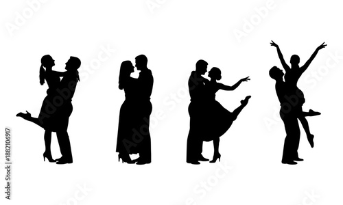 Romantic valentines day dance silhouettes for lovers and couples