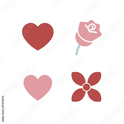 Romantic Vector Icons for Gifts - Rose, Heart, Teddy, and Bowtie
