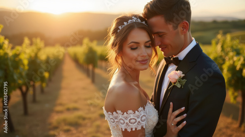 Romantic Vineyard Wedding Photography in Tuscany at Sunset – Bride and Groom Portrait for Destination Wedding