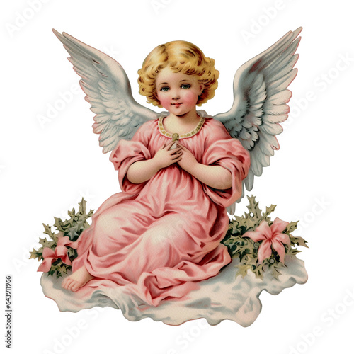Romantic Vintage Holy Angel Christmas Pink Watercolor Clipart Illustration