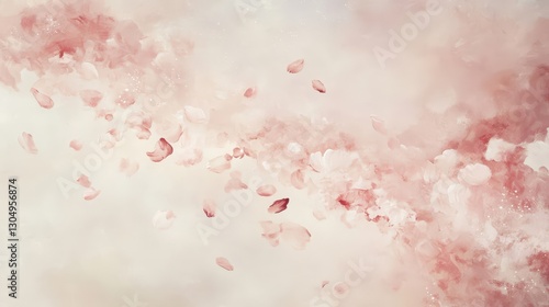 Romantic wallpaper with cascading petals in a soft pink sky with tiny light sparkles