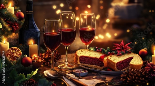 Romantisches Abendessen in weihnachtlicher Stimmung, Weihnachten Neujahrs-Toast, Illustration transparent background