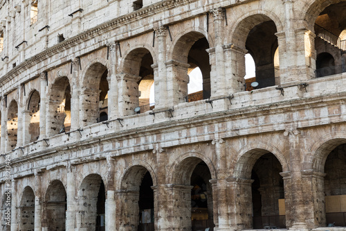 Rome, Italy.One of the most popular travel place in world - Roman Coliseum under evening sun light and sunrise sky.