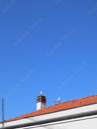 architecture, roof, sky, building, church, chimney, tower, house, religion, old, brick, red, home, tile, cathedral, bell, europa, top, blue, historic, landmark, cross, travel, detail, stone