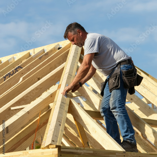roofer, construction, man, at, work, carpenter, artisan, hammer, beam, hard, hat, sun, building, exterior, cloud, site, house, nail, occupation, profession, real, estate, residential, structure, roof, sky, wood, working, roofing, frame, rooftop, industry, timbering, builder, men at work, home, person, people, build, timbering, wooden, carpenter's shop, saw, concrete, tool, labourer